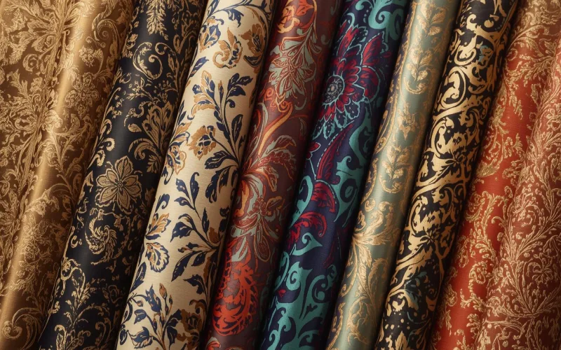 - ابریشم: نرمی و درخشندگی فوقالعاده، مناسب برای مبلمان سلطنتی
