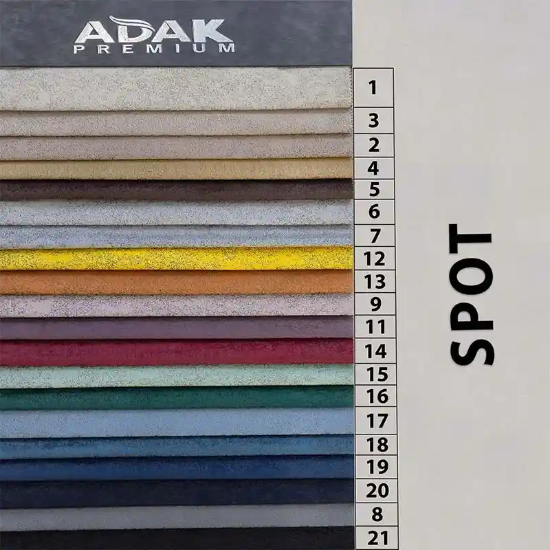 پارچه اسپات یک پارچه با کیفیت چرم و شیک میباشد که برای مبلمان های مدرن و کلاسیک مناسب میباشد که توسط شرکت آداک پریمیوم در 12 رنگ بندی مختلف تولید و به فروش میرسد که این رنگ بندی ها را میتوانید در کالیته های موجود در صفحه مشاهده کنید. پارچه اسپات یک پارچه با دوام و با کیفیت میباشد که همچنین ظاهر شیکی دارد که در زیبایی خانه نیز بسیار تاثیرگذار است.
